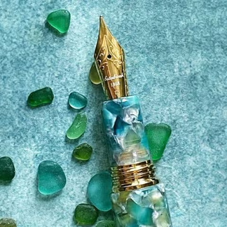 The gloriously muted colours of the Back to the Lands collection are inspired by the flower-power era of hippies and free love - the 1970s. Funky Lake is a delightfully dark and dusky blue, trimmed in gold, with a gold-plated steel nib available in a range of sizes.