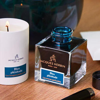 Shimmering inks use very finely-ground particles, usually of gold or silver metal, giving an effect like very fine glitter, so your writing or drawing catches the light and sparkles. While we generally find them safe to use in fountain pens, a bit of extra care should be taken not to let these inks dry in the pen, as the particles could then clog the feed.