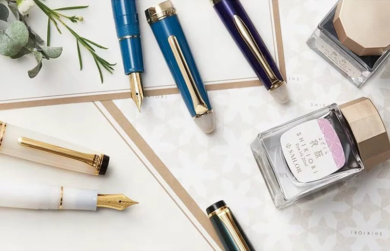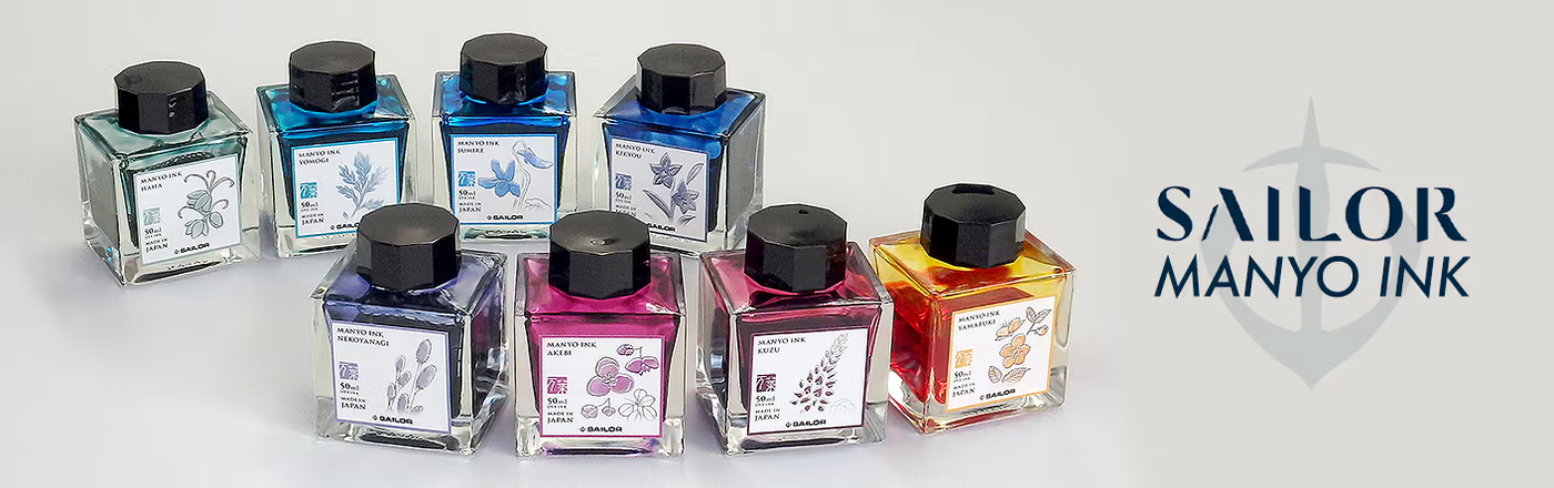 Sailor makes many different inks designed for fountain pens. If you are looking for bottled ink, the Sailor Ink Studio Bottled Ink comes in 100 different colours, so you should find something that you like. For something a bit more ‘standard,’ Sailor also makes ink cartridges, available in red, blue, black, and blue-black.