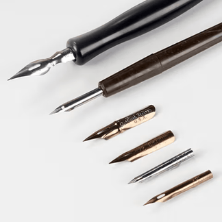 The Speedball name has become synonymous with high-quality pen nibs. There are two different kinds of nibs: broad-edge and pointed, both can be inserted into Speedball pen holders. In addition, Speedball also product a wide range of pen holders, dip inks & cleaners, calligraphy markers and fountain pens.