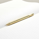 The Method mechanical pencil is made from precision machined solid brass which gives the pencil an excellent weighty feel. It's comfortable to hold and the heavier brass construction gives the pencil good balance. Due to the brass construction, the pencil will age with time and take on a more distressed look, but if you do prefer that gorgeous shining brass body, a little bit of polish will bring the pencil back to its original glory.