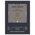 Arches Drawing Pad measures 9 x 12" (approximately 230 x 310mm) and contains 16 sheets of 200gsm cream-coloured 100% cotton paper. Fine-grained, acid-free and perfect for pencils, pastels, charcoal, pen & ink, gouache and fibre-tipped markers.