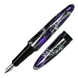 Black fountain pen made from high quality resin with silver leaf and navy blue glitter inserts. #5 Schmidt stainless steel nib available in a range of nib sizes and screw on cap that can not be posted.