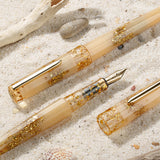 The Benu Euphoria range is a collection of pens that celebrates life and things that bring us joy, whether that be music, a beautiful scene, a cocktail or a delicacy. Golden Beach features warm amber resin, embedded with gold foil for a bit of sparkle.