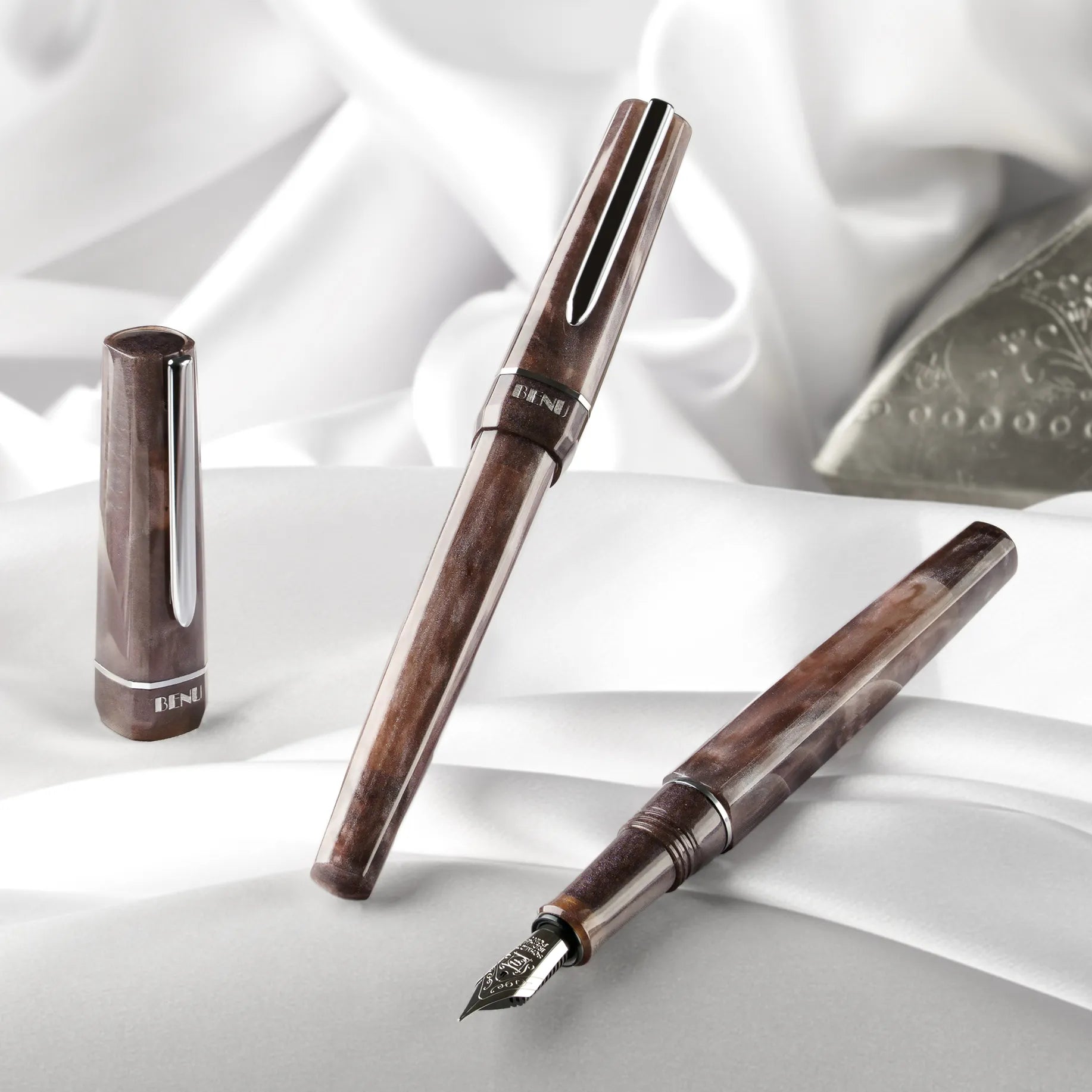 Haute - a collection of elegant fashion-inspired pens from Benu. Sleek and stylish facetted bodies, made from some beautiful resins in marbled smoky grey.
