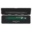 Mechanical pencil styled to match the classic 849 metal ballpoint. Aluminium body with the distinctive Caran d'Ache metal pocket clip; and 'Caran d'Ache' engraved around the polished button. 0.7mm lead. Eraser under the top button.
