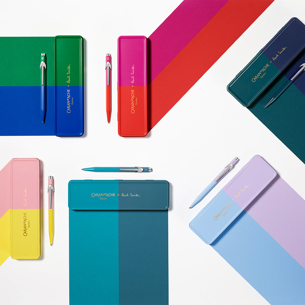 The slim retractable ballpoint made from aluminium is now available - while stocks last - in a selection of stylish colours inspired by Paul Smith's signature stripe motif. Each Paul Smith 849 carries the designer's familiar signature and is supplied in an ultra-thin presentation tin decorated with the Paul Smith stripes.