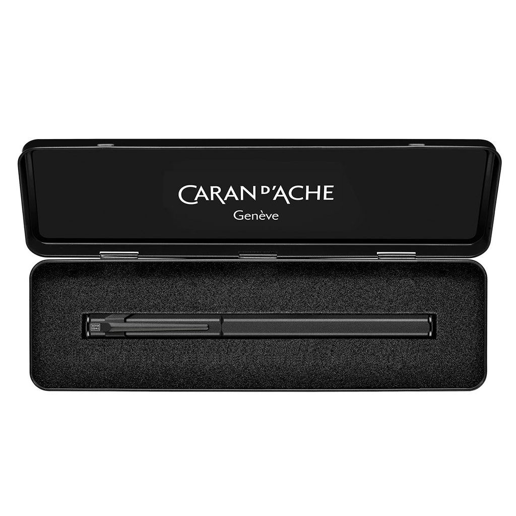 Supplied with a black Caran d'Ache ink cartridge, and presented in a Black Edition sculpted metal slimpack presentation tin.
