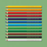 Selection of 12 water-soluble Swisscolor coloured pencils, presented in card packaging.