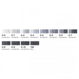 Set of 12 Copic Classic Markers in cool grey. Colours include C0, C1, C2, C3, C4, C5, C6, C7, C8, C9, C10 and 100.