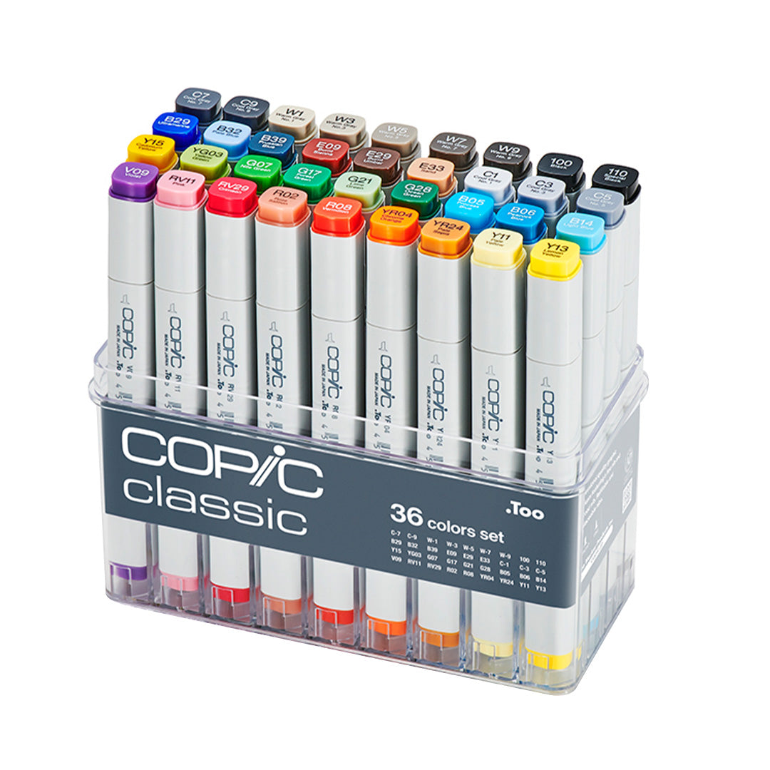The huge range of Copic markers is impressive. They make different styles of marker, like the Copic Sketch or the Copic Ciao, but the real breadth is found in the colour choices. The Copic Sketch range includes a set of 358 different colours. You can see why that would be a popular choice for professional artists and designers.