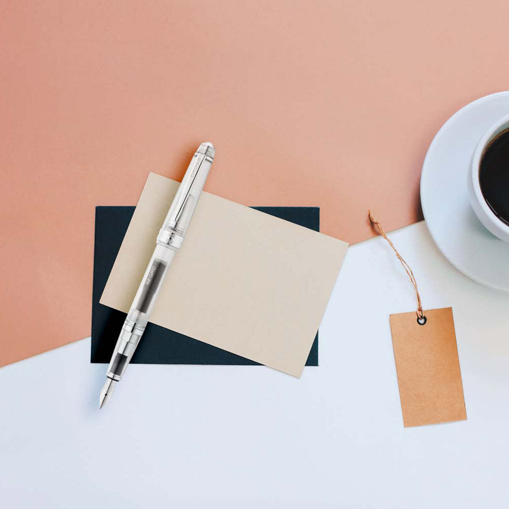 The Bailey Light is as elegant and classically-styled as the Bailey - but weighs less thanks to its resin body. This barrel is translucent, showing the filling mechanism within, and features polished chrome trim.