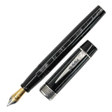 Made using Onoto's special fusion-bonding technique, which enables the use of three different pearlescent colours, the Pickwick is a combination of black, dark grey and white. This is set off by polished sterling silver trim in the form of 3 cap bands, a pocket clip inscribed with a chevron pattern and the Onoto logo, which also features on the cap button. Our own limited edition version of this pen has a special Greek inspired cap band which really brings the pen to life.