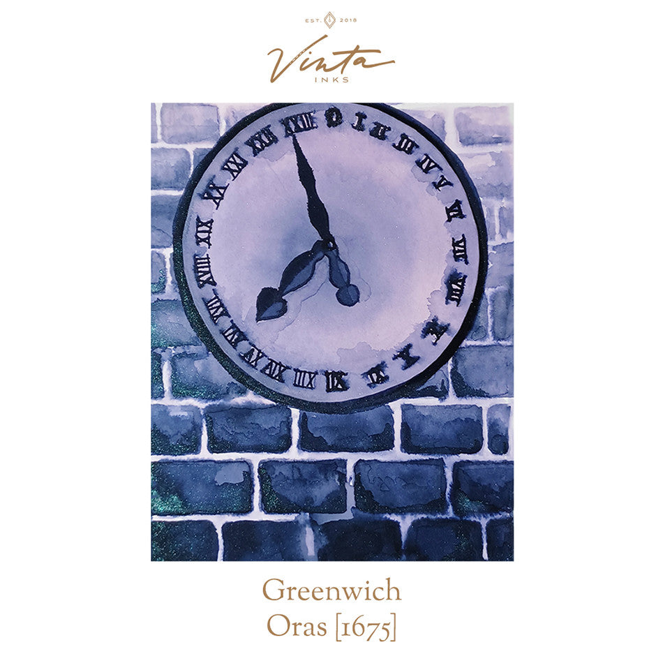 Greenwich 1675 commemorates the creation of Greenwich Mean Time and the founding of the Royal Observatory. It's a bluish-green ink with a slight starry shimmer.