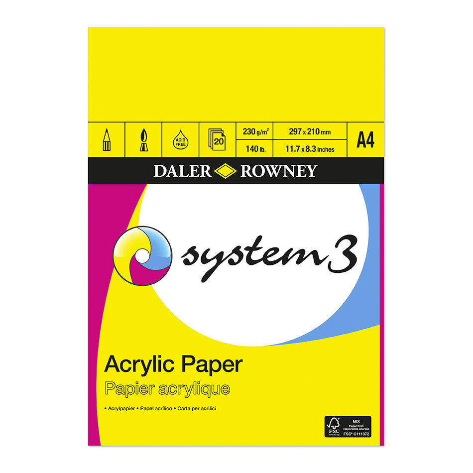 System3 Acrylic Paper features a linen texture, ideal for use with acrylic paint. Acid-free, 230gsm, 20 sheets.