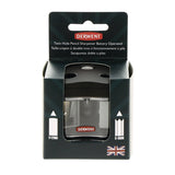 Derwent's twin-hole sharpener is perfect for both standard size pencils and their chunkier cousins, catering for 6mm up to 12mm diameters. It features a hole cover for safety, a broken tip remover and high quality replaceable blades. The shavings canister is translucent, so you can see when to empty it, and the cover is easily removed so there's little chance of spraying shavings all over the desk (or yourself).