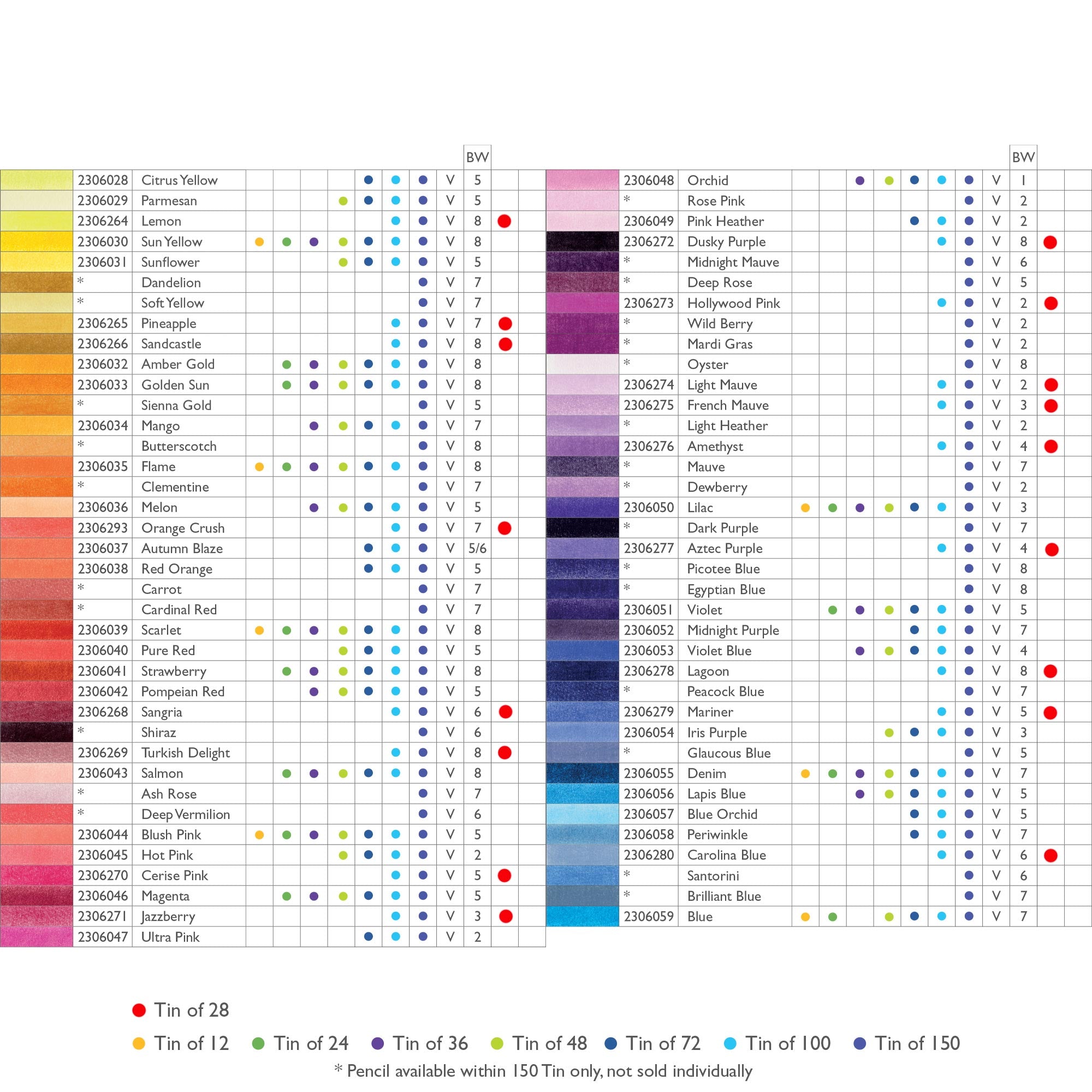 Complete set of 150 assorted colours.