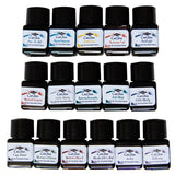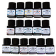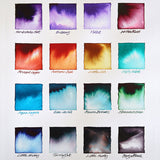 Set of 16 colours of water-based, acid-free, vegan-friendly ink, each contained within a 12ml bottle. 13 of the colours - Monboddo's Hat, Bilberry, Violet, Ancient Copper, Autumn Oak, Writer's Blood, Soft Mint, Aqua Lagoon, Eau de Nil, Aurora Borealis, Sherwood Green, Twilight and Onyx Black - represent staff favourites and best-sellers, and when you take into account that there are over 100 colours of Diamine ink, this was not a simple task! The remaining 3 are the newest members of the gang: Michael, which is blue; Matthew, which is grey; and Louise, which is yellow.