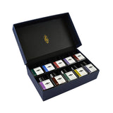 Diamine offer a new set of 10 colours in this special collection. The set is based on the theme of famous music composers and contains ten 30ml glass cube bottles presented within a royal blue gift box and printed with a gold foil Diamine logo. Once opened the gift box shows a treble clef in gold foil on the inside of the lid.