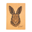 Premium handmade nabuk leather covered notebook with a depiction of a rabbit on the front cover and yellow page marker. Each journal features 192 pages of 110 gsm lined ivory paper. The leather cover has a suede feeling and the size of the journal means it feels more like a book than a standard journal. The page ends are decorated with a line of rabbits poking their heads up, incredibly cute.