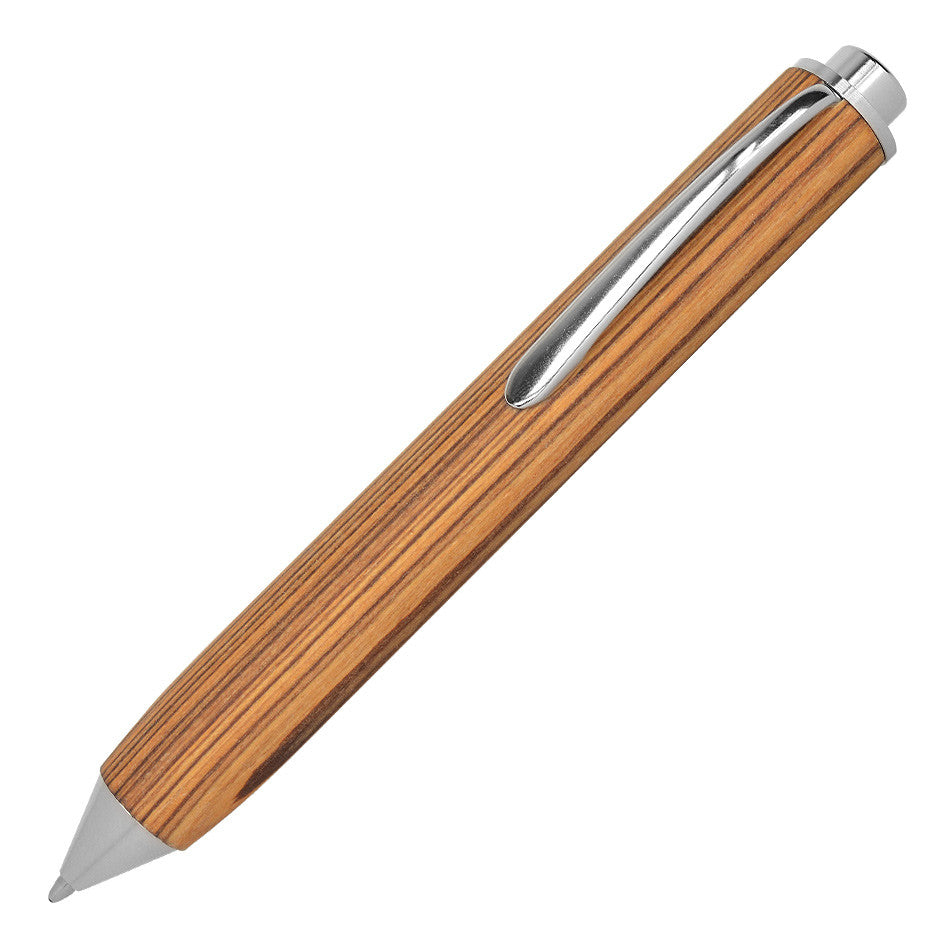 The Fellow is a chunky retractable ballpoint pen from e+m. The barrel is made on a lathe by hand from a single piece of either zebrano wood or oak, the result is a nicely balanced pen that doesn't feel overly heavy, despite its cumbersome measurements.