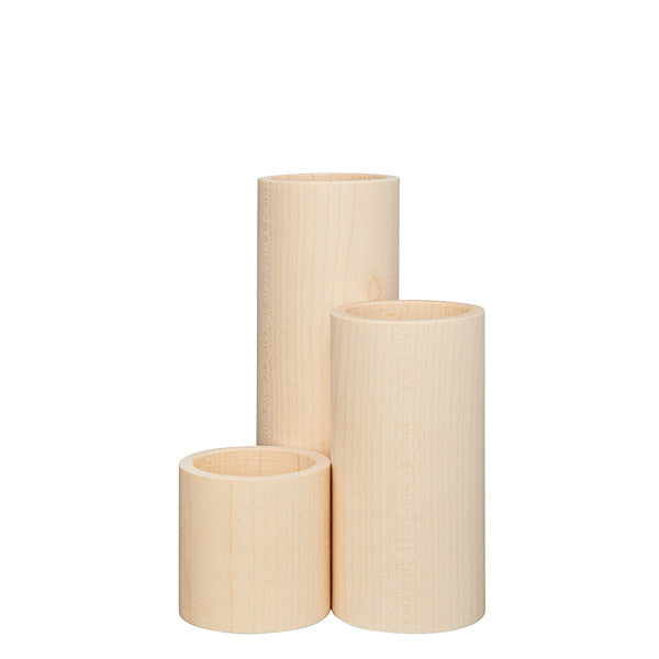 Stunningly simple stepped wooden pen pot, comprising three different heights for storing a selection of different stationery.