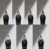 The black resin and anodised aluminium barrel features an ink window, so you can see not only how much ink you've got left, but also what the piston is up to. Silver trim completes the look, and there's a choice of stainless steel nib sizes including Architect, which creates a thin upward stroke and a broad horizontal stroke..