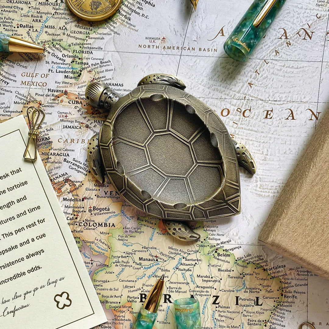 Why lay your pen down on the desk when you could prop it up on an obliging tortoise? This metal desk accessory from Esterbrook acts not only as a pen holder but as a repository for lots of little bits and pieces such as paperclips, drawing pins, erasers and sharpeners. You can use it as a paperweight as well.