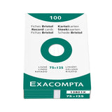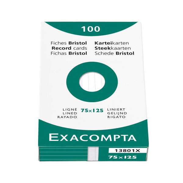 Pack of 100 cards. Each card is 5 x 3 inches (125 x 75mm) and made from finest quality 100% PEFC 205gsm Clairefontaine paper stock. Suitable for all types of pen, ink and marker. Available with a choice of rulings.