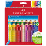 Box of 48 Faber-Castell Colour Grip pencils - all the colours in the range. Water-soluble, easily-sharpened coloured lead. Award-winning pencil design: ergonomic triangular barrel with soft raised grip dots. Water-based varnish coating.