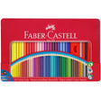Sturdy tin of 48 Faber-Castell Colour Grip pencils - all the colours in the range. Water-soluble, easily-sharpened coloured lead. Award-winning pencil design: ergonomic triangular barrel with soft raised grip dots. Water-based varnish coating.