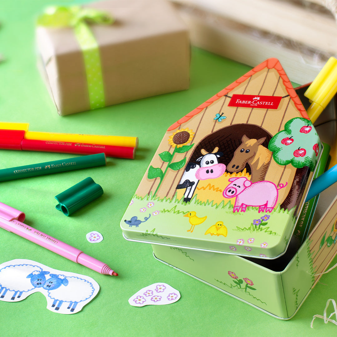 The colouring pen that's also a constructional toy is now available in a Farmhouse tin. Contains 18 different colours of connectable felt-tip colouring pens. The perfect gift for kids who love to colour or draw.