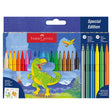 Set of 24 felt-tip colouring pens from Faber-Castell. Set includes 6 Special Edition Metallic Pens. These markers have a tough point and ventilated cap. Their bright ink colours are water-based and coloured with food dyes, so can be easily washed out of most fabrics.