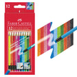 Set of 12 Faber-Castell Erasable Colour pencils. These high-quality pencils are much more erasable than normal coloured pencils making them useful in a wider range of situations. Strong colours; smooth colour laydown; SV-bonded lead to reduce breakage; colour-matched eraser-tips on each pencil; water-based eco paint finish; sharpen with any standard sharpener. Cardboard box of 12 colours