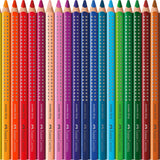 Faber-Castell's Jumbo Grip Colour pencils - easy-grip thanks to chunky triangular barrel with raised grip dots. 16 bright water-soluble colours, complete with sharpener. Ideal for children and recommended by teachers.