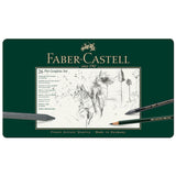 Includes a range of Faber-Castell 9000 pencils in hardness grades 2H, HB, B, 2B, 4B, 6B and 8B, 9000 Jumbo pencils in hardness grades 2B, 4B and 8B, Graphite Aquarelle pencils in hardness grades 2B, 4B and 8B, Pitt Graphite Pure pencils in hardness grades 3B, 6B and 9B, Pitt Graphite crayons in hardness grades 2B, 6B, 9B and other accessories. Supplied in a tin so it is ideal for use on the move.
