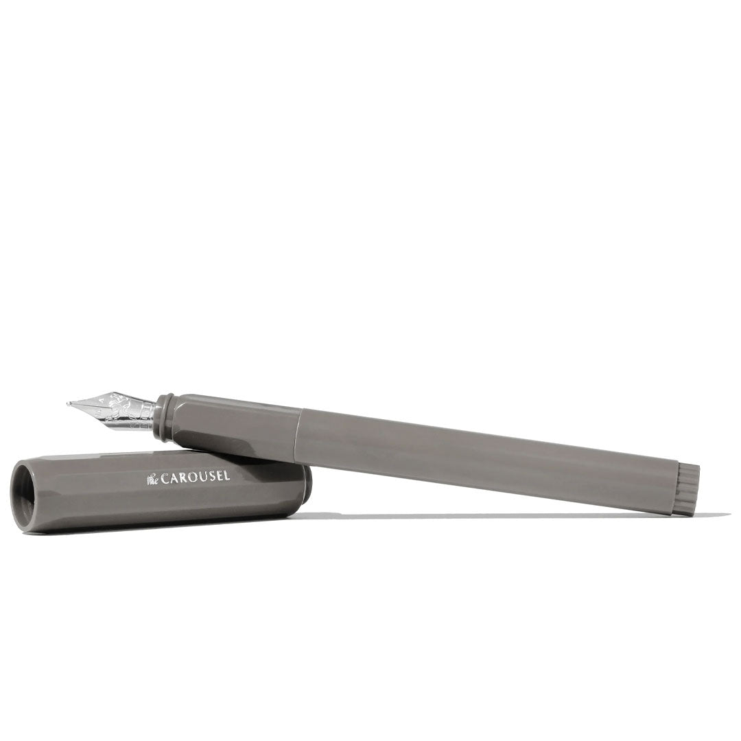 The Carousel fountain pen combines tactility and nostalgia in a lightweight body made of gloss-finish acrylic. The custom-ground steel nib has a subtle flexibility and is stamped with a galloping horse that dances to your every word. Features an air-sealed click-on cap.
