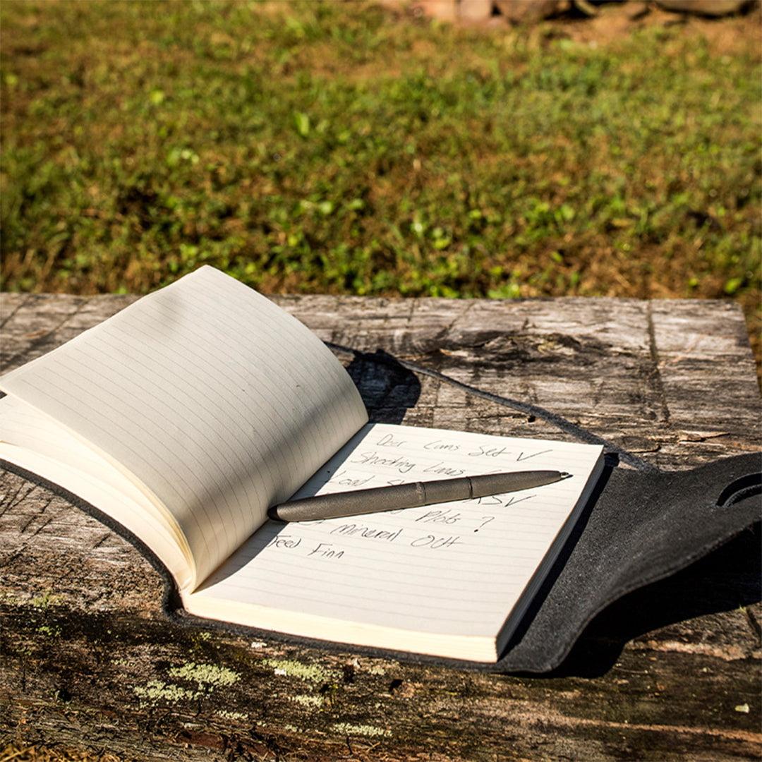 Not only is the Tungsten Bullet Space Pen eye-catching with its unique texture, but its durability and ease of carry is exactly what you need when working in environments that are unforgiving. This pen performs in all-weather, in places most pens won’t. Don’t worry about scratches or corrosion because this ceramic polymer-based finish is as tough as it gets.