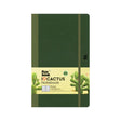 The I Love Cactus Notebook contains 192 pages of 100gsm Favini Crush ECO citrus paper with a ruled layout. The flyleaf is Favini Crush ECO Coffee paper and the cover is a type of plant-based leather made from sustainable, organically-grown Nopal (Opuntia, or prickly pear) cactus leaves, and features rounded corners and black embossing. Also includes a promo card and brochure describing Flexbook and the cactus concept.
