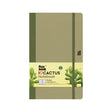 The I Love Cactus Notebook contains 192 pages of 100gsm Favini Crush ECO citrus paper with a ruled layout. The flyleaf is Favini Crush ECO Coffee paper and the cover is a type of plant-based leather made from sustainable, organically-grown Nopal (Opuntia, or prickly pear) cactus leaves, and features rounded corners and black embossing. Also includes a promo card and brochure describing Flexbook and the cactus concept.