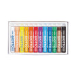 Set of 12 11mm thick, 70mm long oil pastels. Excellent at layering. Vibrant colours. Includes: White, Peach, Yellow, Orange, Dark Orange, Red, Purple, Sky Blue, Blue, Green, Brown, Black.