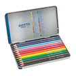 The Stilnovo pencil range from Giotto offers a colouring pencil designed specially with schools in mind, with space allocated on each barrel for a name to be written. Erasable 3.3mm core. Set of 12 watercolour pencils in assorted colours.