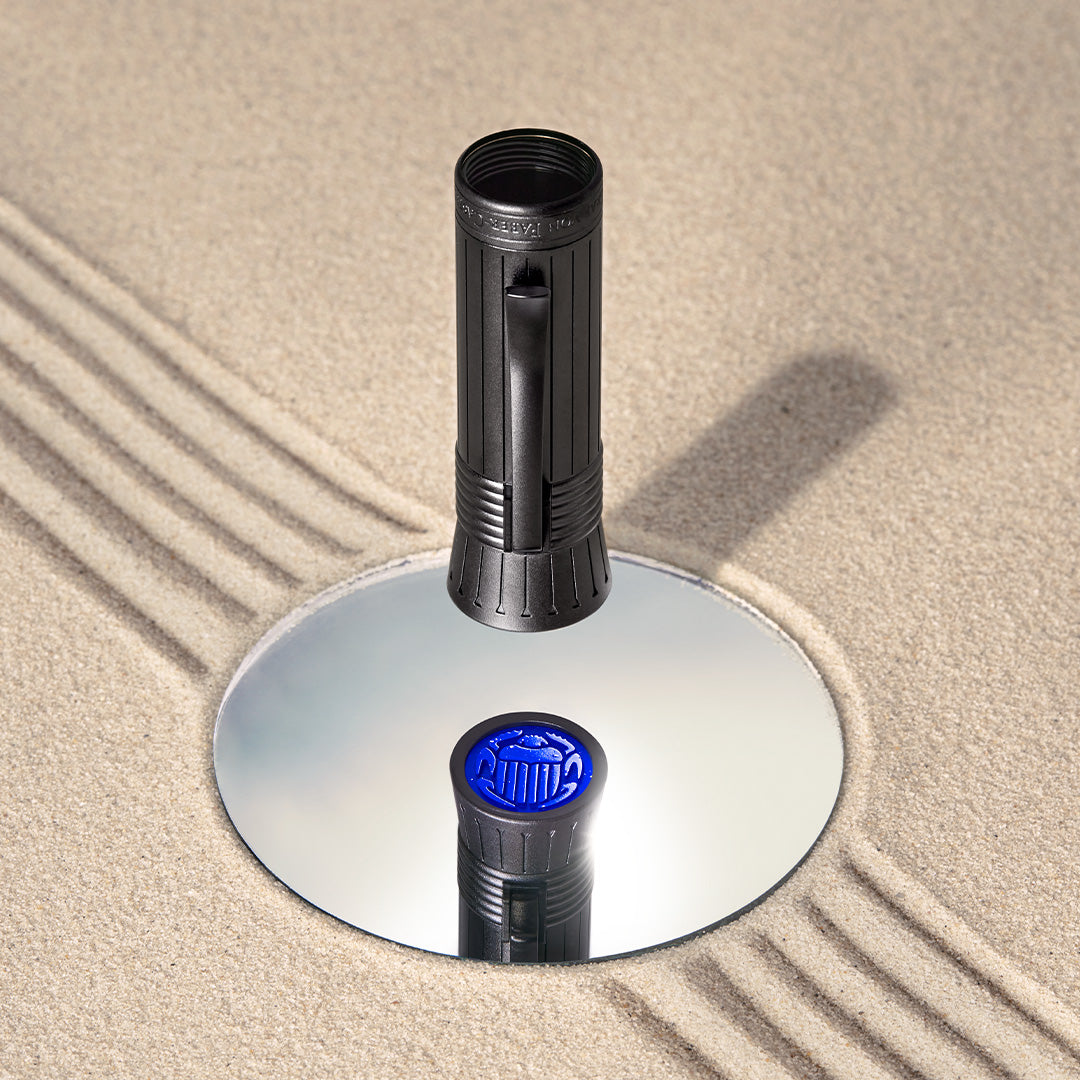 The barrel's end features a small metal plate, plated with 24-carat gold which is engraved with the Eye of Horus - a symbol used as a sign of prosperity and protection. The end piece is engraved with the lotus symbol, with the lotus flower symbolising creation and rebirth to the Ancient Egyptians.