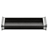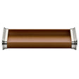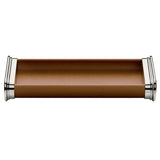 A pencil tray made of metal with genuine cowhide leather wrap. Fine-grained texture available in either black or brown. The leather is hand-stitched with remarkable attention to detail. The heavyweight metal ends are hand-polished to a high gloss finish