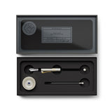 The sharpener is just where it is needed: built into the protective cap. And with the replaceable eraser where you would expect - on the end of the pencil - you have everything together in an ideally compact form and always ready for use. It comes with a stand, so the Project Stellar Perfect Pencil is poised for launch whenever you might need it.