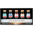 The Jacques Herbin Writers set comprises a range of inks in gorgeously deep and vibrant colours inspired by the French capital, birthplace of Jacques Herbin. The colours included Grey - the roofs of Paris, Blue - Rue de la verrerie, Red - Moulin Rouge, Green - Paris Metro, Yellow/Brown - Eiffel Tower.