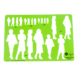 Female human figure template from Jakar measuring 212mm x148mm x 0.76mm. Drawing aid designed to create a basic female figure in a variety of profiles in 5 scaled sizes: 1:20, 1:25, 1:75, 1:100 and 1:125.