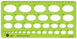 Isometric Ellipse Template from Jakar featuring 34 different sized ellipses. Template measures 255mm x 125mm x 0.76mm. Ellipse widths range from 2mm up to 35mm. Made from green impact-modified acrylic with silk screen printing.
