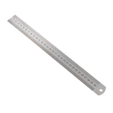 Simple 30cm stainless steel ruler from Jakar marked in cm, mm and 1/2mm on one side and inches 8ths, 16ths, 32nds and 64ths on the other side. Anti rusting material.