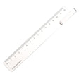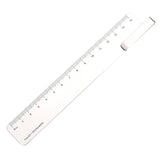 The corners are rounded, for a start, so there's less chance of damaging the pages of the notebook. There's a handy clip, so there's no chance of the Ruma slipping out and getting lost, and it also makes it easy to pick it up from a flat surface. It's made of aluminium, so it's robust but lightweight, and it's available in basic colours to suit most notebook colours. This one's silver, with the centimetres and millimetres marked in black.